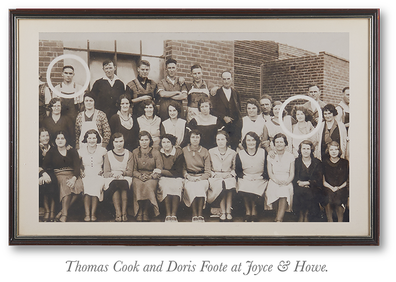 Doris Foote starts in the boot trade as a machinist in 1924. After arriving on a ship from Perth, Thomas joins her at the Joyce & Howe Boot Factory not long after, where he is introduced to the world of bootmaking.