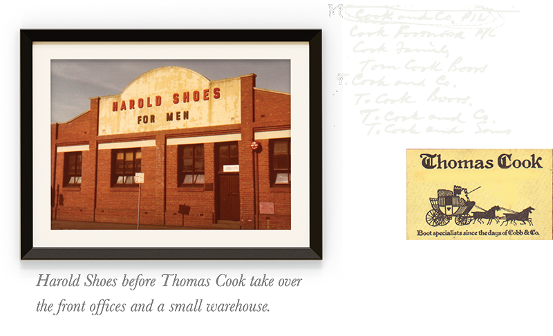 Although Murray & Cook Pty Ltd reaches its final era, Tom Cook branches out to start Thomas Cook Footwear and secures premises at Harold Shoes in Abbotsford.