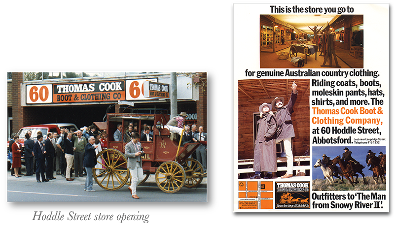 The Thomas Cook horseman was inspired by the iconic Australian film, The Man from Snowy River II. Thomas Cook Boot & Clothing Co. made all the moleskins, oilskins, hats and boots for the film.