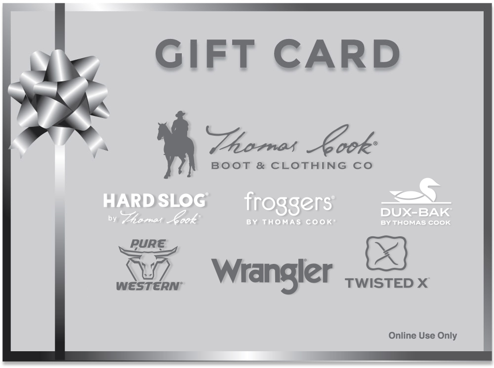• Gift cards purchased via Thomas Cook Boot & Clothing Co. websites is only for online purchases.
